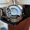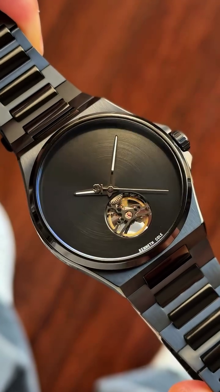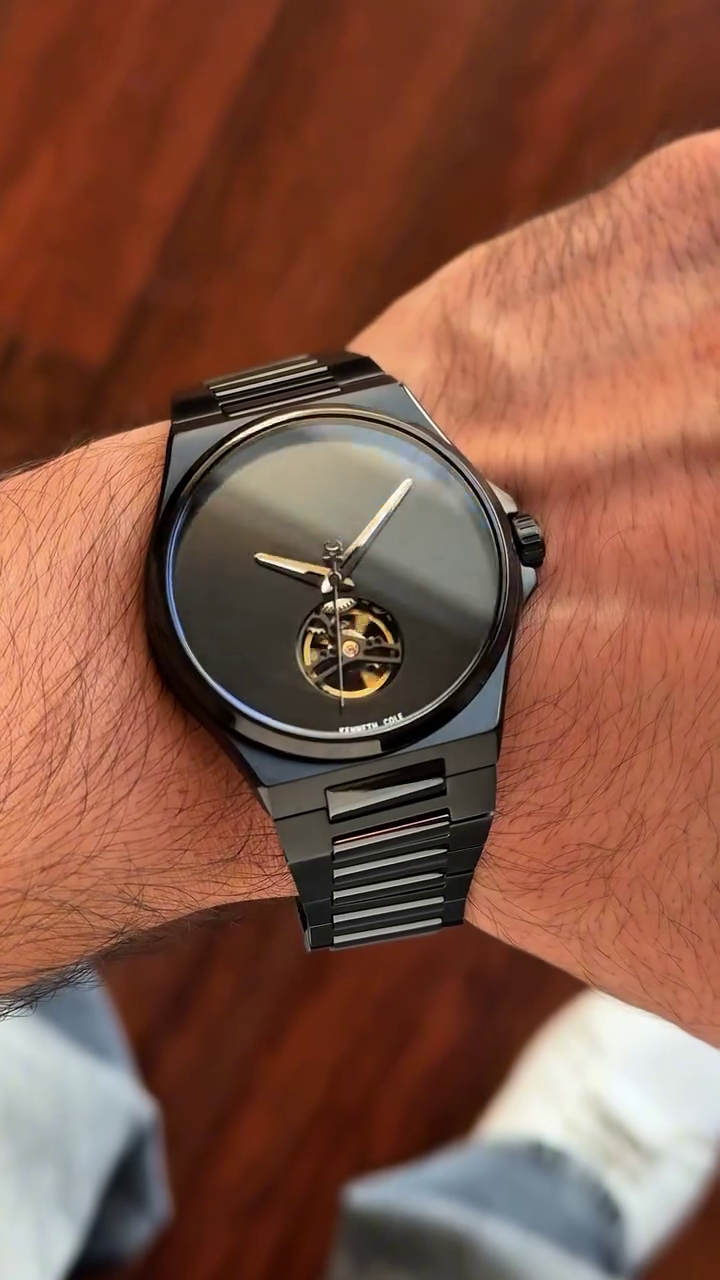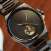 Featuring a sleek minimalist black sunburst dial, this watch captures light beautifully, creating subtle reflections that shift with every movement 🌑💫 The clean dial design is balanced by a striking open-heart window, offering a glimpse into the intricate automatic movement beneath—where craftsmanship meets art. Watching the mechanism in motion is a reminder that true luxury is found in the details.