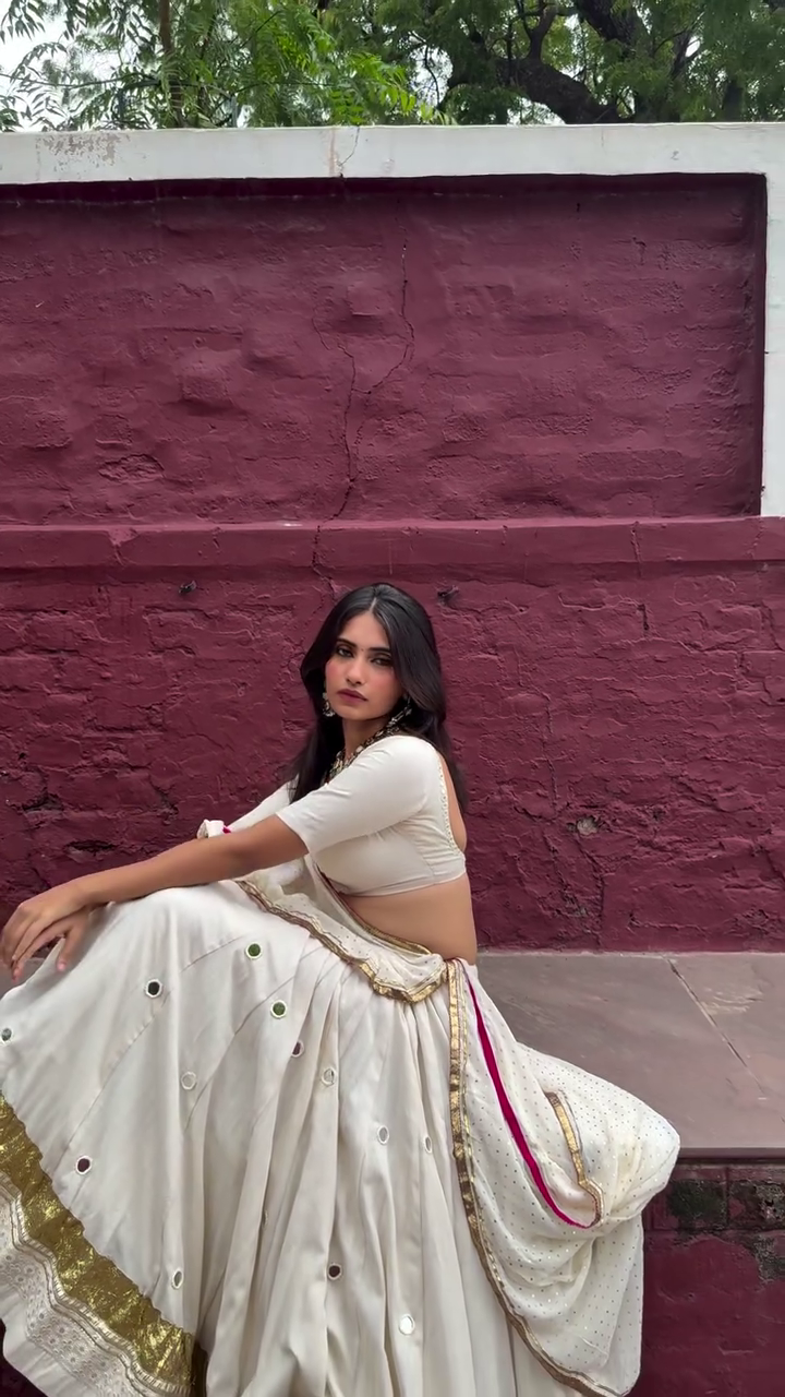 This Navratri, let your outfit reflect your energy, joy, and devotion. With this Divine Glow White Mirror Work Lehenga, you wonโt just celebrate โ youโll dazzle like the true star of the festival. ๐ผ๐ช