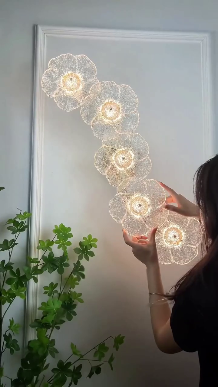 The warm LED lighting at the center of each bloom provides a soothing glow, perfect for creating a relaxing atmosphere in living rooms, bedrooms, hallways, dining areas, or boutique-style interiors. 🏡🌙 Whether used as accent lighting or as a focal design element, BloomLuxe adds elegance without overwhelming the space.