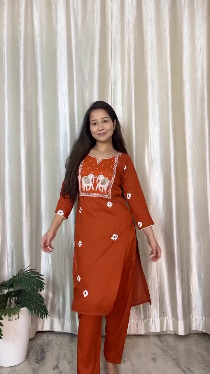 Step into effortless ethnic elegance with this beautifully crafted rust-orange outfit that perfectly blends tradition with modern simplicity. This look is all about grace, comfort, and cultural charm—ideal for those who appreciate subtle yet striking fashion. 🧡✨