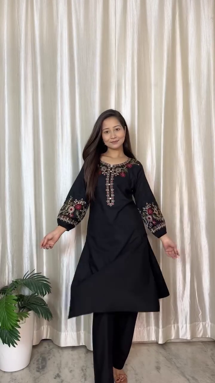 The kurta is adorned with a delicately embroidered front panel that showcases traditional motifs, including graceful elephant designs. These elements add a touch of heritage and artistry, making the outfit feel unique and culturally rich. The embroidery is detailed yet balanced, enhancing the look without making it too heavy. 🐘🎨
