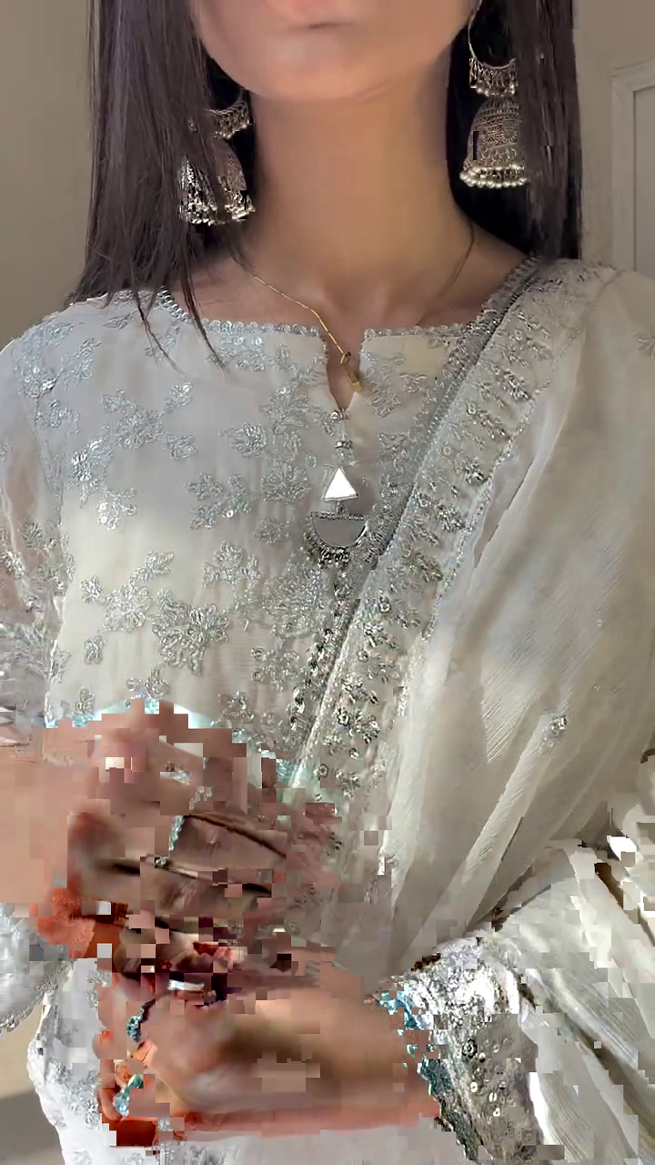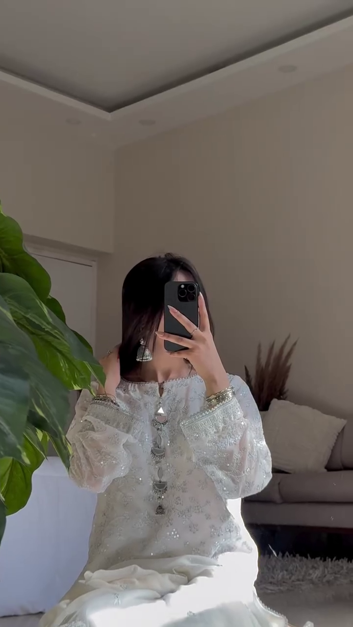 The kurta is beautifully adorned with delicate embroidery and shimmering sequin work, giving it a soft sparkle that catches the light with every move β¨. The detailed craftsmanship across the bodice and sleeves reflects refined artistry, while the subtle embellishments maintain a classy and understated appeal.