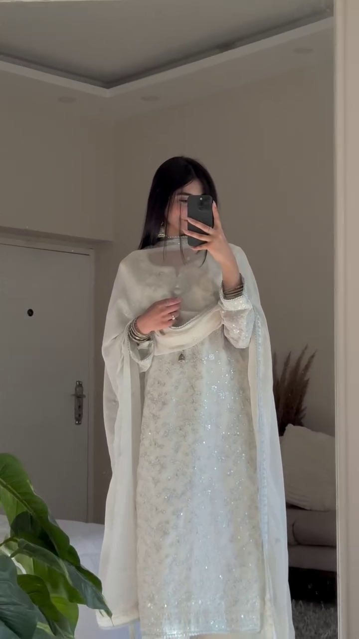 This Ethereal White Salwar Suit is more than an outfitβitβs a statement of elegance, serenity, and charm. With its soft shimmer and timeless white palette, it makes every woman feel effortlessly graceful and truly radiant.