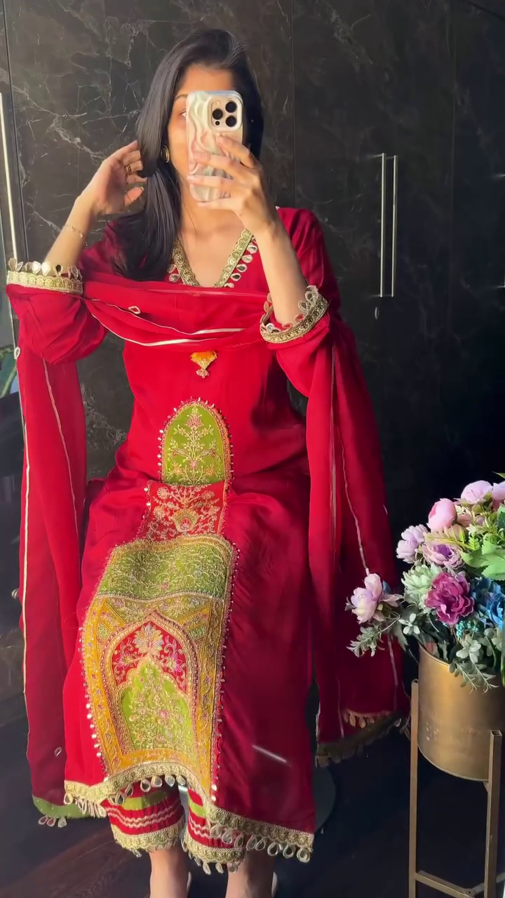Turn heads with this breathtaking red embroidered suit set designed to capture elegance, tradition, and royal charm. With intricate detailing, rich color tones, and graceful silhouettes, this ensemble is perfect for festive celebrations, weddings, and special occasions where you want to make a lasting impression.
