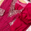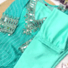 Crafted In Flowing Anarkali Silhouette, The Kurta Features An Opulent Flare That Enhances Movement And Grace. The Heavy Mirror Work Adorns The Neckline And Sleeves, Creating A Radiant Look That Catches The Light From Every Angle. Each Detail Is Thoughtfully Placed To Highlight Feminine Charm While Offering A Luxurious Festive Feel.