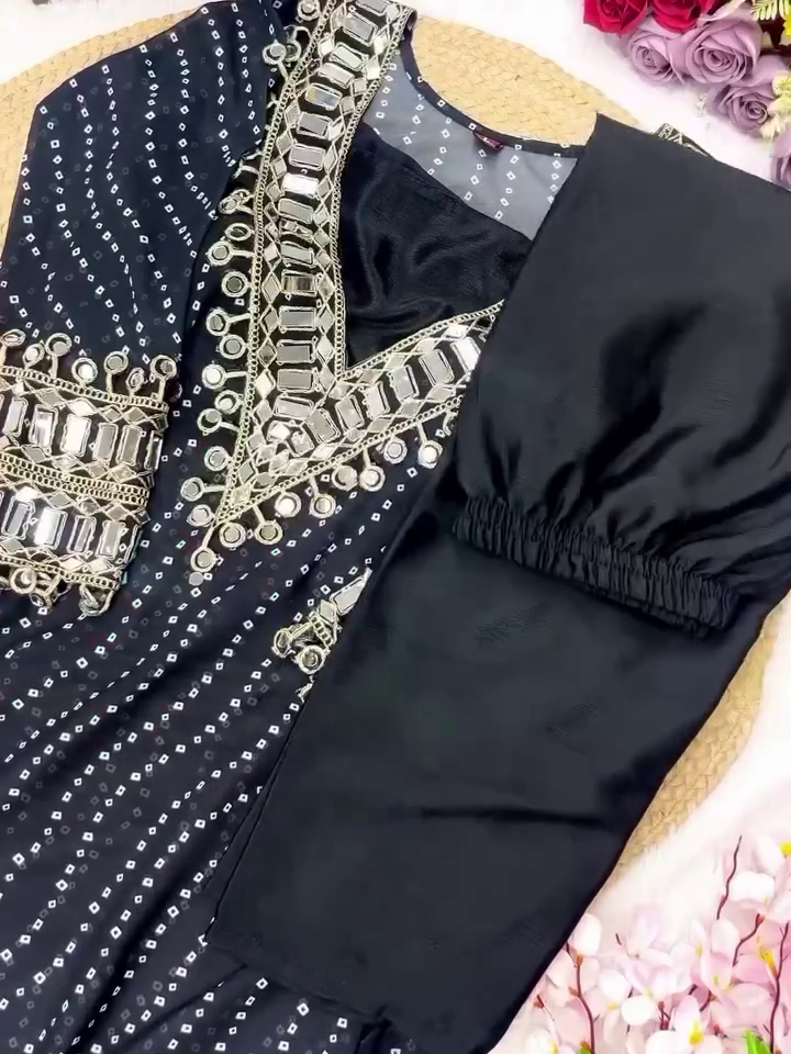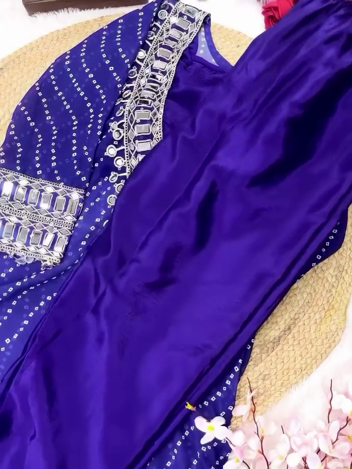 • ✨ Elegant Bandhej Print With All-Over Mirror Work
