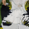 Eye-catching floral and leaf print design in contrasting tones of black, white & mustard ππ€.