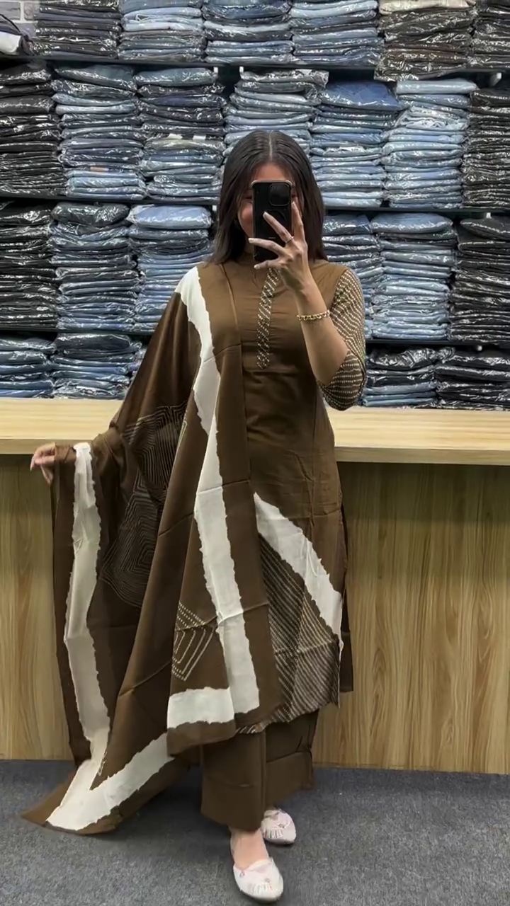 The patterned dupatta elevates the overall look, adding elegance and versatility. Its subtle designs complement the kurta, making it a statement piece that can be draped in multiple styles for different occasions. Paired with straight pants, this set provides a modern, streamlined fit, ideal for both casual wear and semi-formal events.