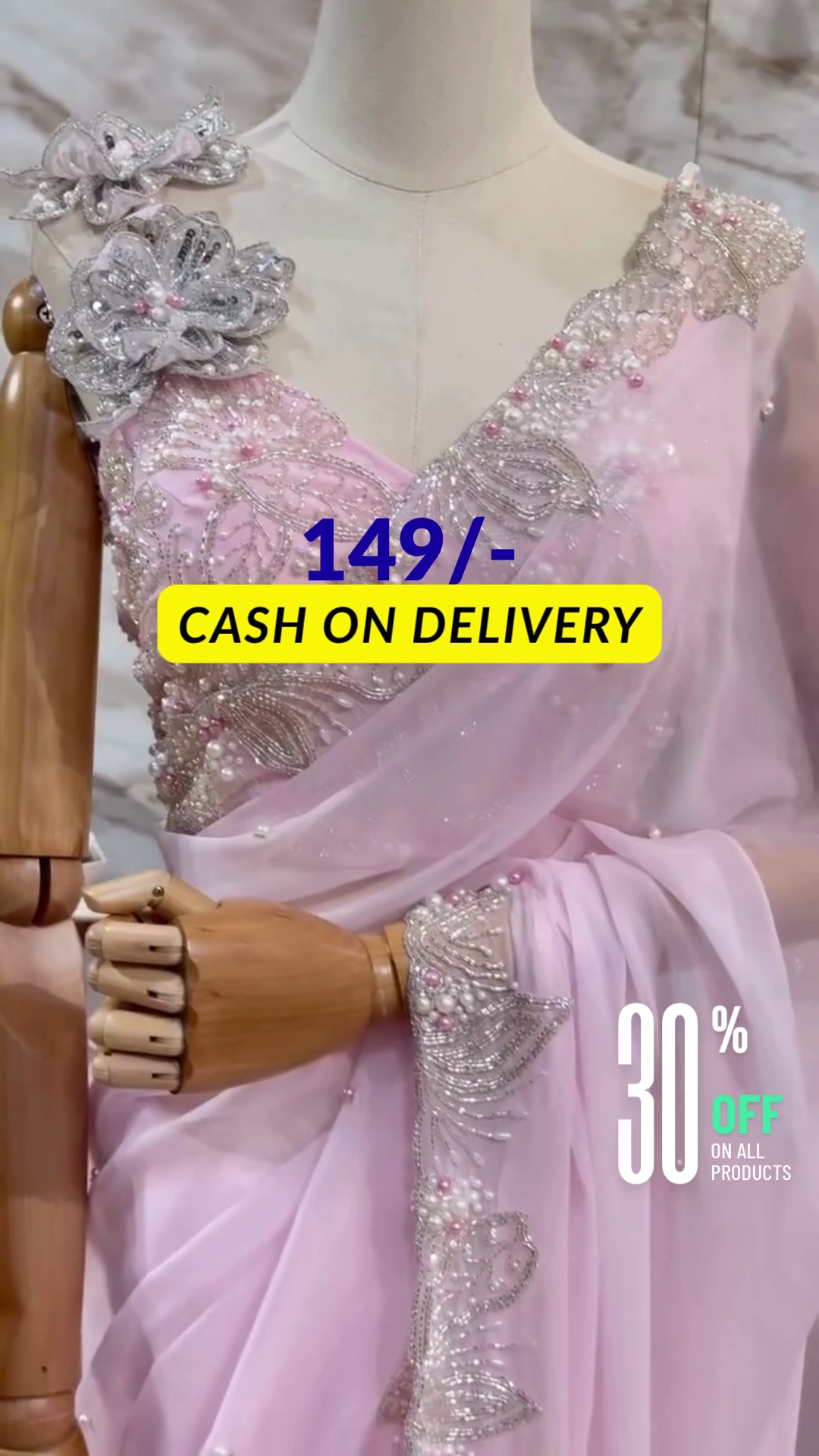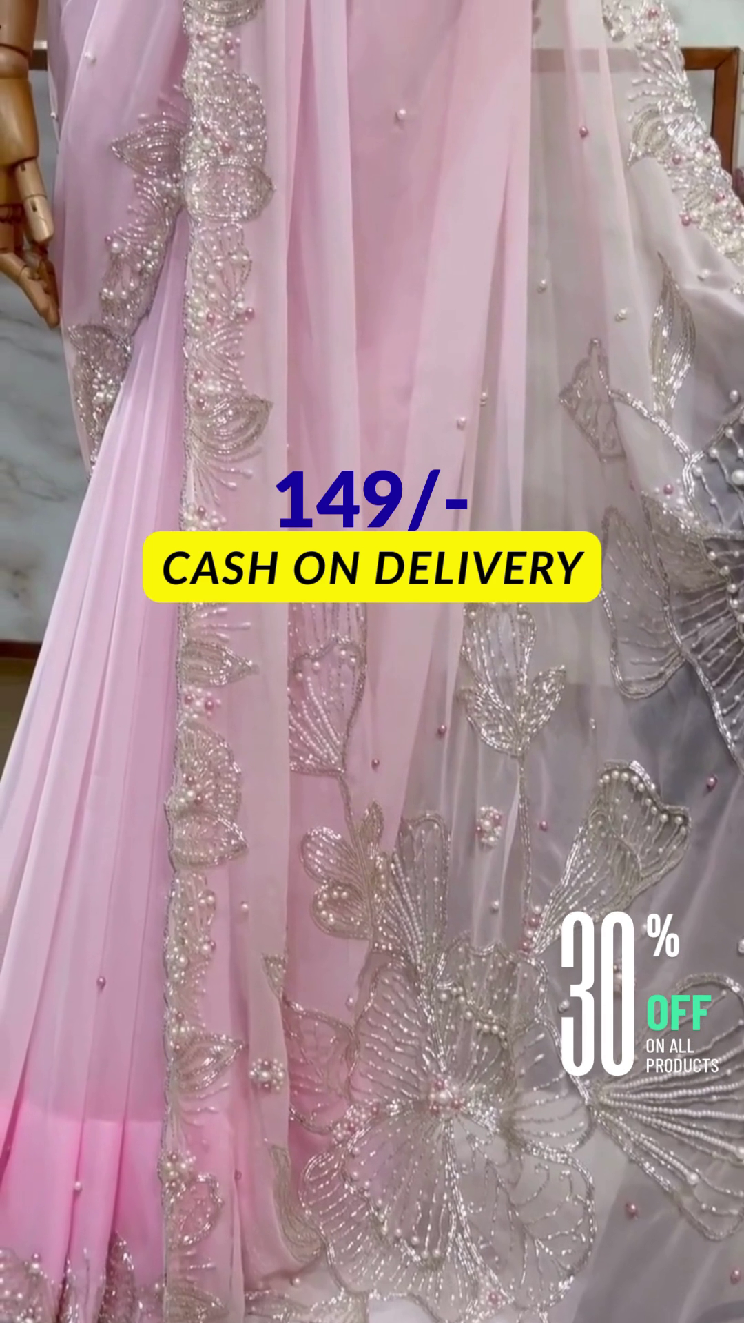 The delicate baby pink hue embodies romance and charm, while the contrast blouse adds a striking touch of modernity to the traditional drape. The blouse is designed with intricate embroidery and stylish finishing, making it versatile enough to stand out on its own or enhance the saree’s elegance.