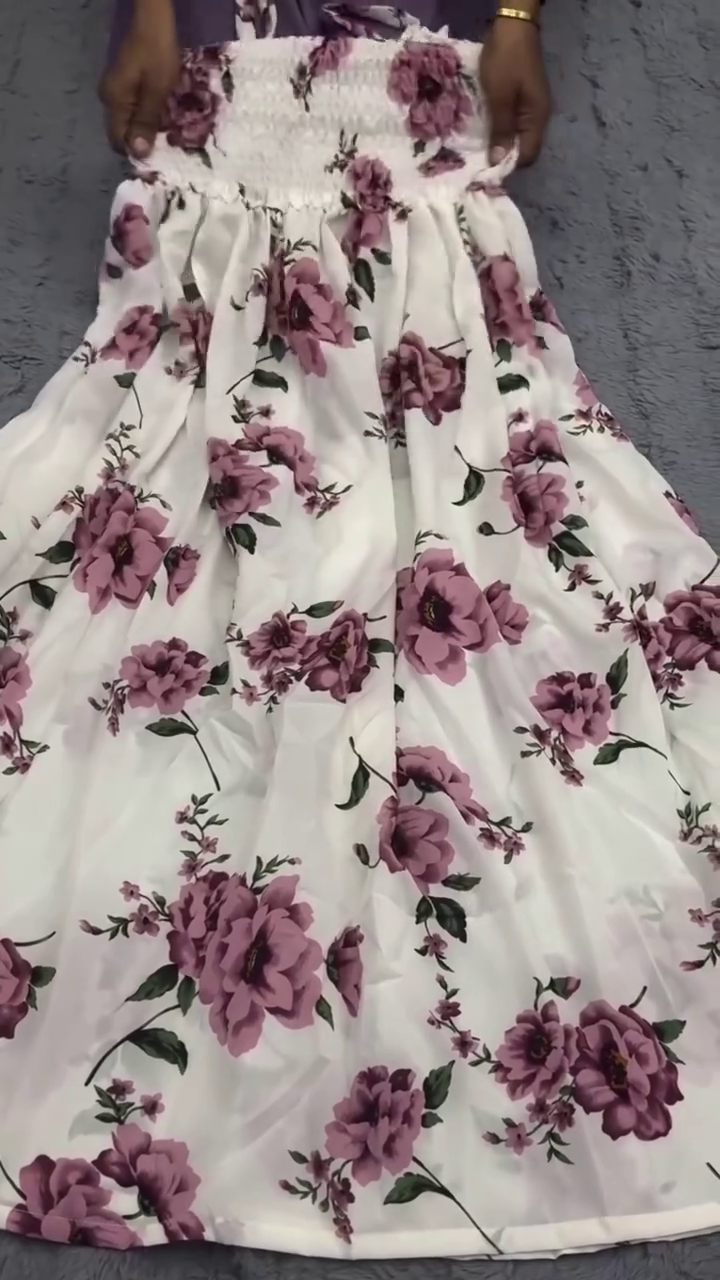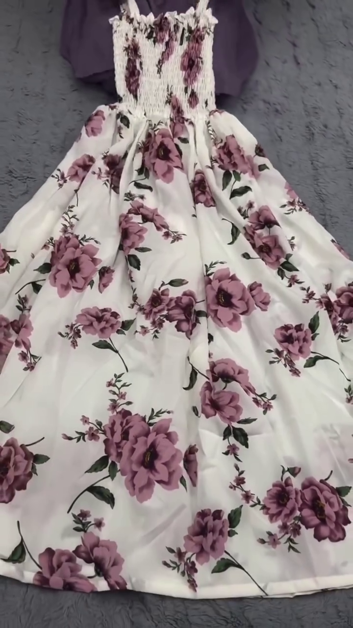 The floral maxi dress features a beautiful lavender flower print on a soft ivory base πΌ, creating a timeless and refreshing vibe. The lightweight fabric flows gracefully with every move, making it a go-to piece for any season. The smocked bodice ensures a perfect fit that flatters your silhouette effortlessly, while the adjustable straps add a touch of versatility and comfort. πβ¨