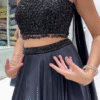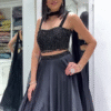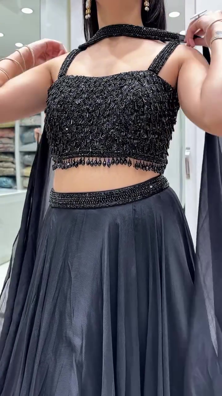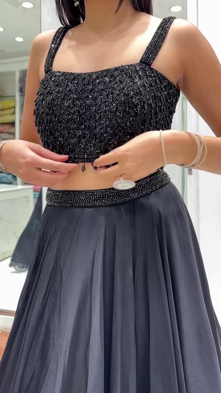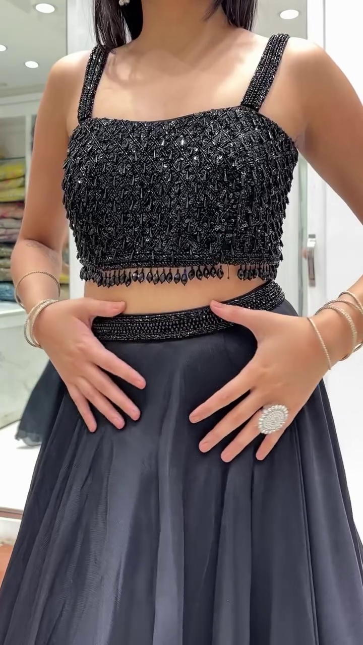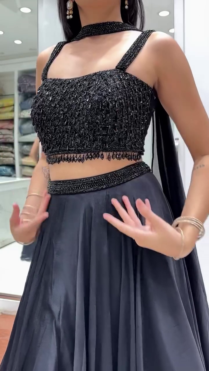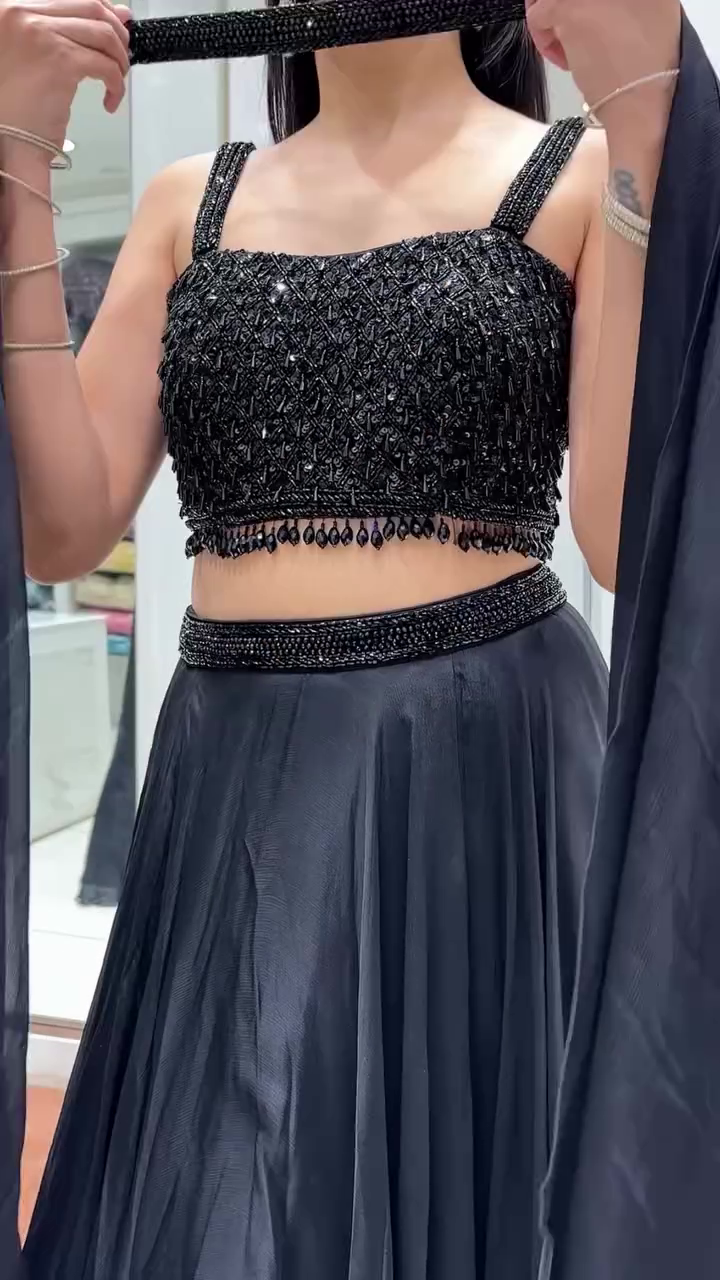 The Rich, Deep Black Colour Exudes Class And Power, Making You Stand Out With Confidence And Sophistication. The Entire Lehenga Is Embellished With Shimmering All-Over Sequin Work, Designed To Catch The Light From Every Angle β A Glamorous Choice For Evening Celebrations And Fashion-Forward Bridesmaids.
