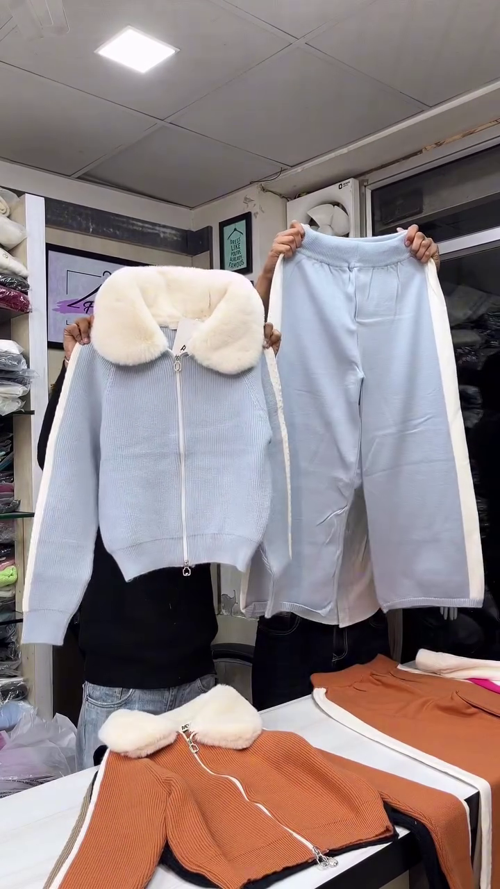 This set features a zip-up ribbed jacket crafted from premium soft-knit fabric that feels gentle and warm against the skin π€π§₯ The highlight is the plush faux-fur collar, adding an elegant, luxe touch while keeping you extra cozy during cooler days. The smooth front zipper allows easy wear and versatile stylingβzip it up for warmth or leave it slightly open for a relaxed look.