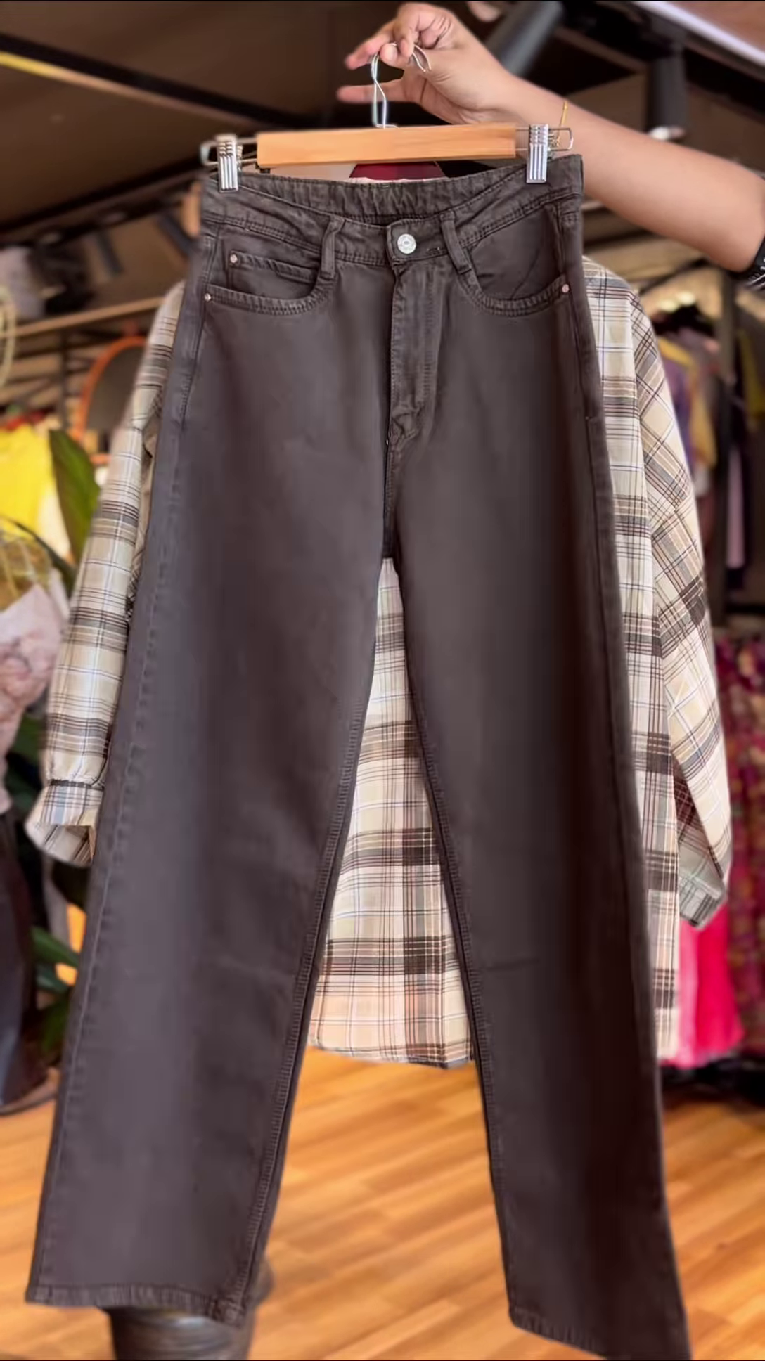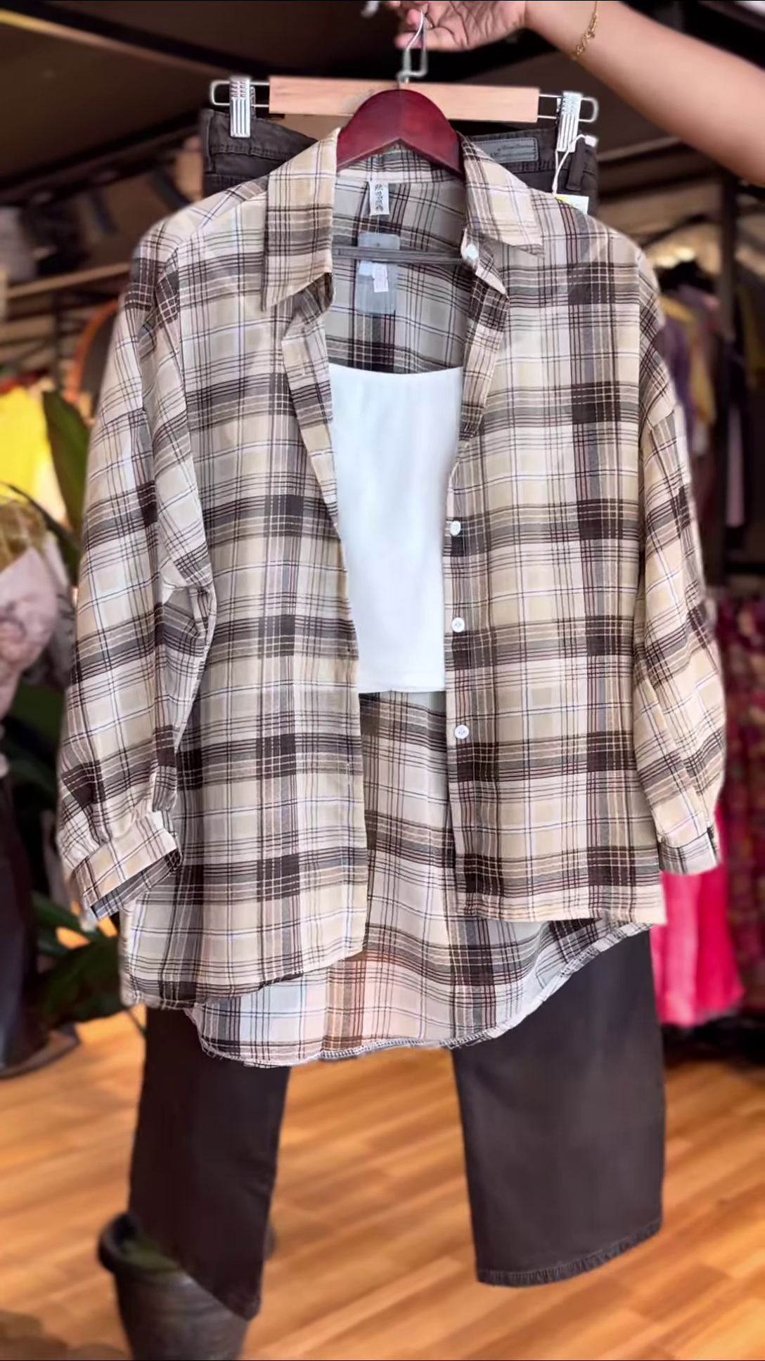 Whether you’re headed to a coffee run or just vibing through your day, this plaid flannel shirt set is your new wardrobe BFF. Soft beige and brown checks over a breezy button-down shirt, paired with a crisp white crop and classic black jeans β itβs all the neutrals you need, wrapped in one easygoing look βπ