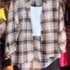β Beige & brown checkered flannel shirt