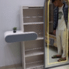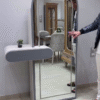 The minimalist floating console shelf adds both style and practicalityβperfect for displaying dΓ©cor, storing essentials, or placing daily accessories πΏβ¨ Its smooth, curved design complements the arch mirror beautifully, creating a cohesive and ultra-modern aesthetic.