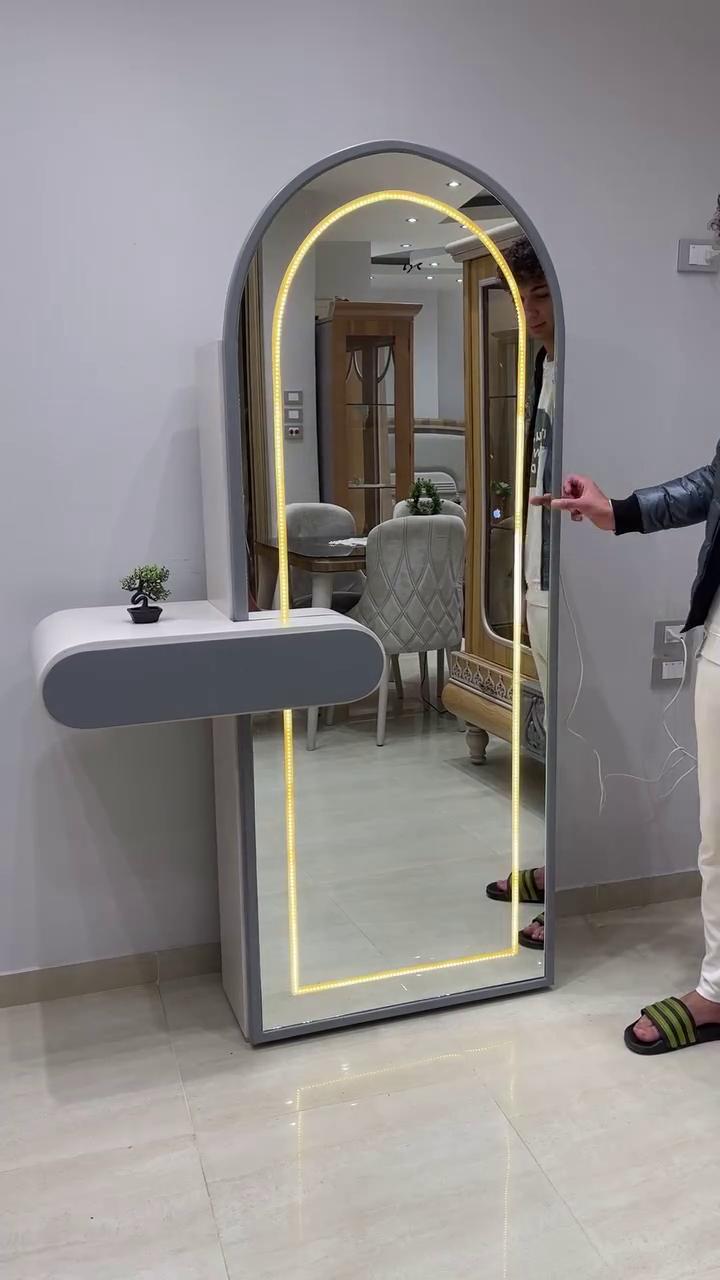 Designed with a tall arched mirror silhouette, this console mirror instantly adds height and sophistication to your room. The integrated warm LED border lighting softly outlines the arch, creating a calming ambient glow that enhances depth and mood without being harsh π‘π€ Ideal for entryways, dressing areas, bedrooms, salons, or luxury living spaces.