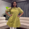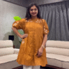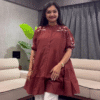 Designed in a frock-style cut, the tunic features a relaxed and slightly flared silhouette that flatters all body types. It offers a playful yet polished look, making it a great choice for women who love easy-going fashion with a hint of sophistication. The length and fit make it versatile enough to be worn as a dress or styled as a long top with leggings or jeans.