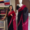 The captivating black base symbolizes elegance and mystery, while the rich red accents add passion and vibrancy to the ensemble. Whether featured through bold borders, intricate prints, or statement pallu designs, the red detailing elevates the saree’s overall appeal. This color pairing is always in trend and perfect for weddings, receptions, festive gatherings, cocktail parties, or special occasions. 💃