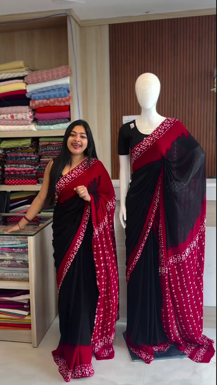 Bold & Beautiful – Trending Black & Red Viscose Georgette Saree for Glamorous Evenings