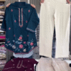The dark green tunic with pink floral embroidery and white trousers is easy to maintain with gentle washing, ensuring the embroidery and fabric retain their color and texture over time. Its breathable material, elegant design, and versatile styling make it a must-have for women who want comfort, sophistication, and ethnic charm in one ensemble.