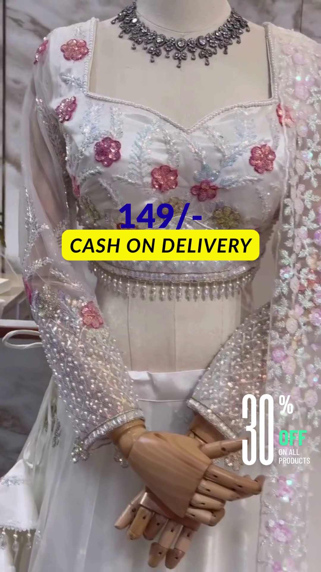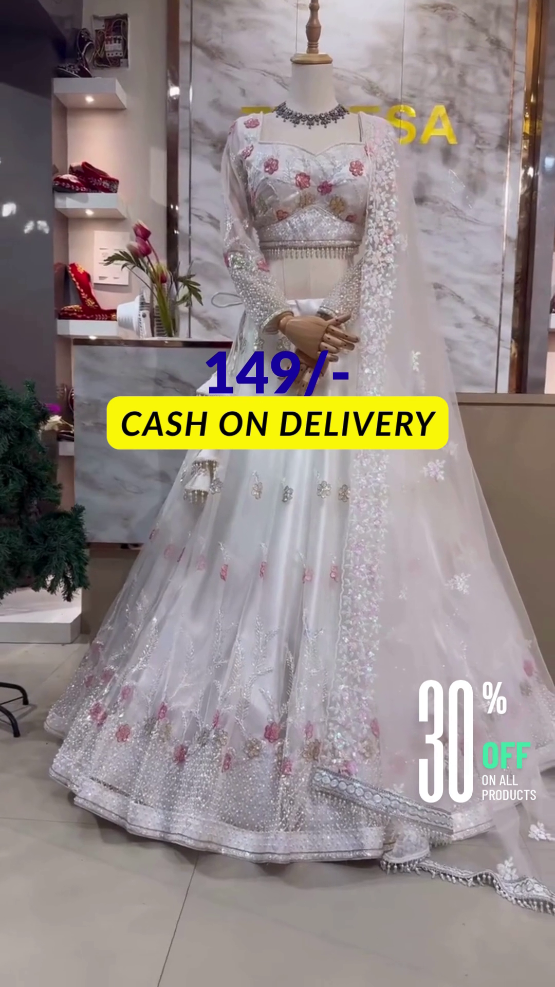 Crafted from premium fabrics: Silk, Net & Organza