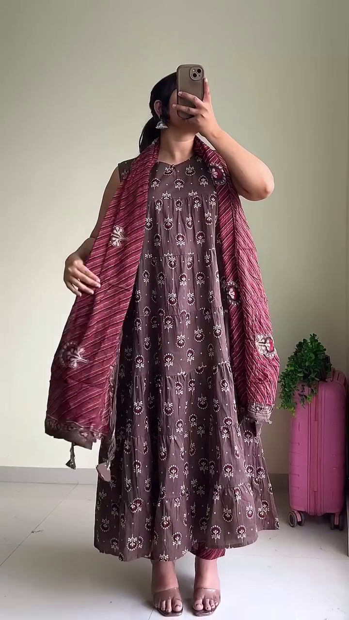 Whether attending a brunch, a casual outing, or a family celebration, this floral printed Anarkali long kurta set promises comfort, style, and timeless elegance.