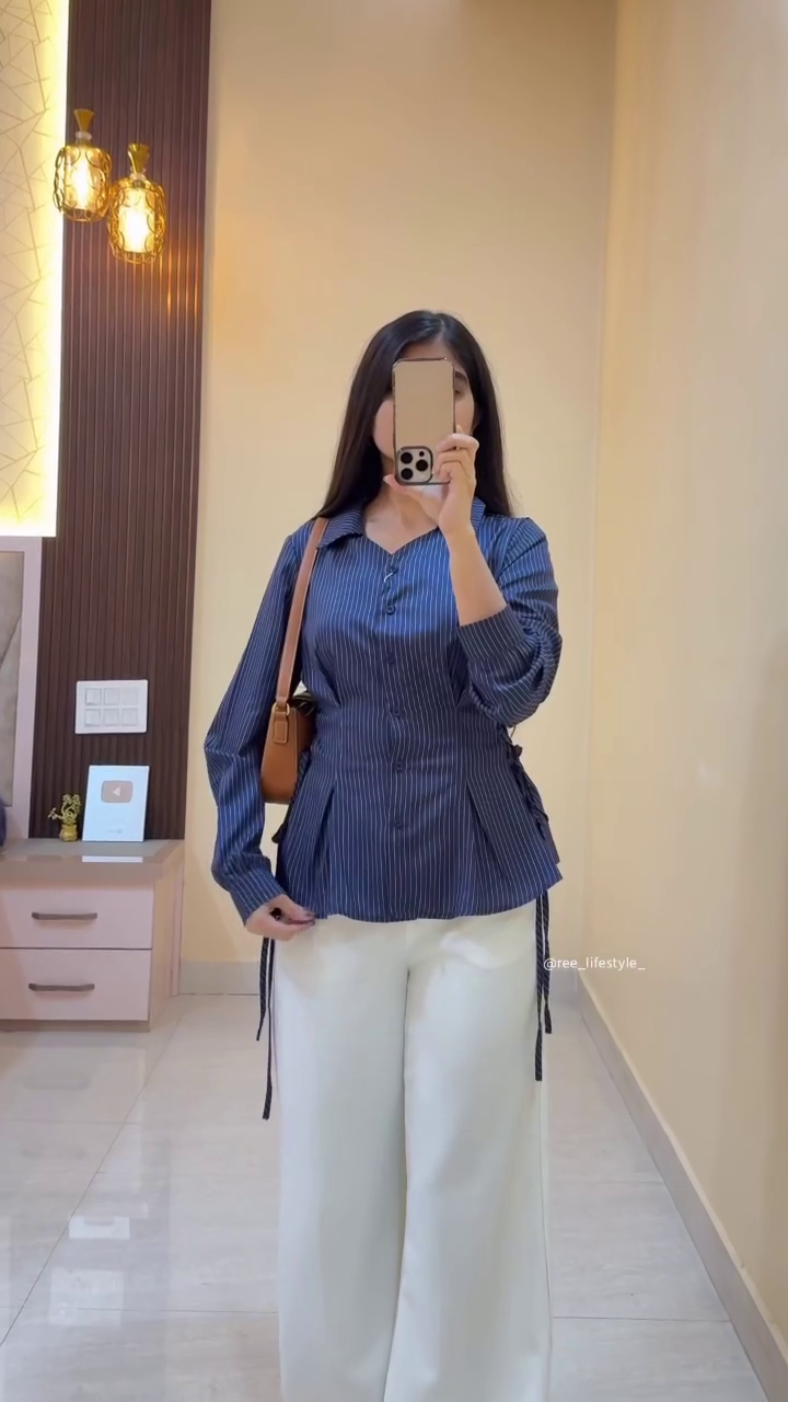Designed with a classic collar and button-down front, the shirt maintains a balance between sophistication and modernity. The long sleeves can be styled rolled up for a relaxed vibe or worn down for a polished finish. Its clean lines and minimalist aesthetic allow you to pair it easily with slim-fit trousers, denim, skirts, or even layered over fitted dresses for a chic layered look. 👗