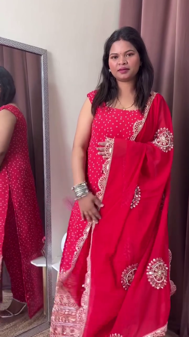 Make a bold and festive statement with this parrot green georgette Bandhani kurta set, exquisitely designed with real mirror work, pearl (moti) embroidery, and a matching dupatta. Perfect for women who love traditional artistry with a contemporary touch, this ensemble combines vibrant color, intricate detailing, and flowing elegance.