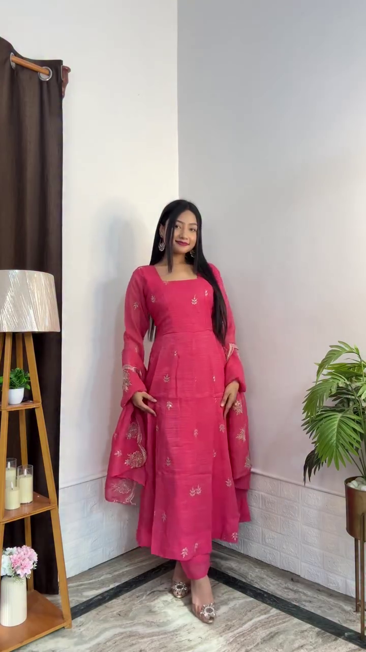 Embrace effortless charm and graceful style with this beautifully crafted pink embroidered rayon Anarkali kurta set, paired with a matching dupatta. Designed to reflect timeless femininity, this ensemble is perfect for women who love elegant silhouettes with a touch of intricate detailing.