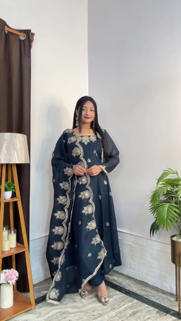 This versatile Anarkali set can be styled with statement earrings, traditional juttis, or elegant heels to create a variety of looks. Perfect for festive celebrations, family gatherings, or casual ethnic wear, it offers a seamless blend of comfort and elegance.