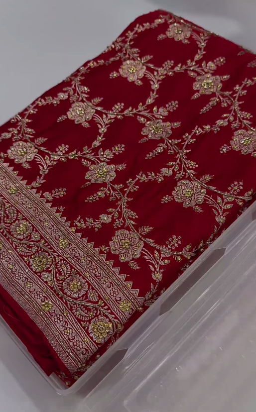 – **Storage:** Store your saree in a cool, dry place, preferably in a garment bag, to protect the fabric and embellishments from dust and damage.